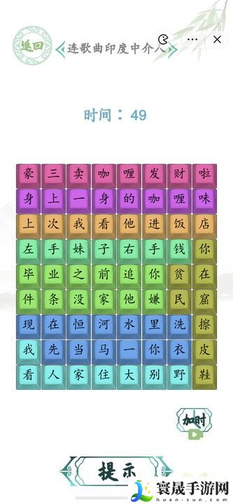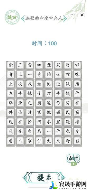 汉字找茬王连歌曲印度中介人需要我们将一首好听的歌曲通过连线的方式把歌词连起来,在这首印度中介人歌曲中我们需要了解具体的歌词,只有这样你才能快速的将其全部有序的连起来!
