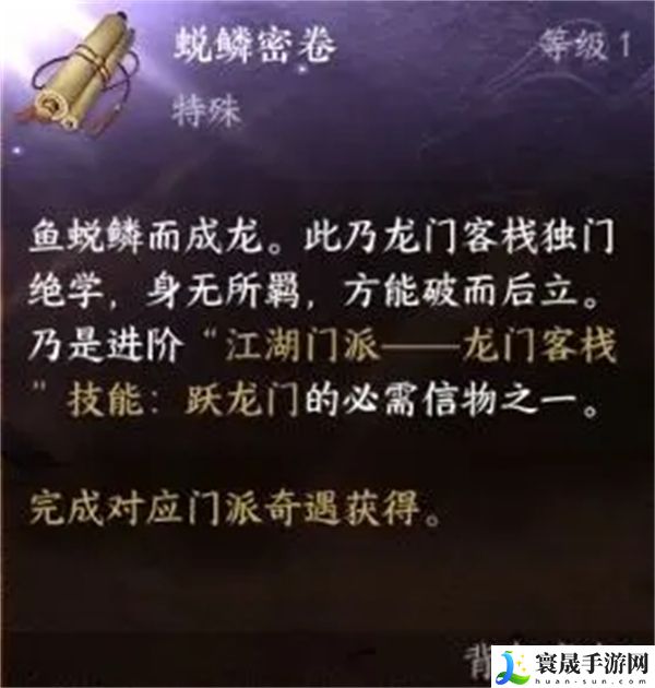 2、完成奇遇,即可获得龙门客栈特质的升级信物【蜕鳞密卷】。