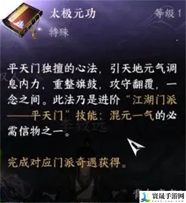 2、完成奇遇,即可获得平天门特质升级信物【太极元功】。