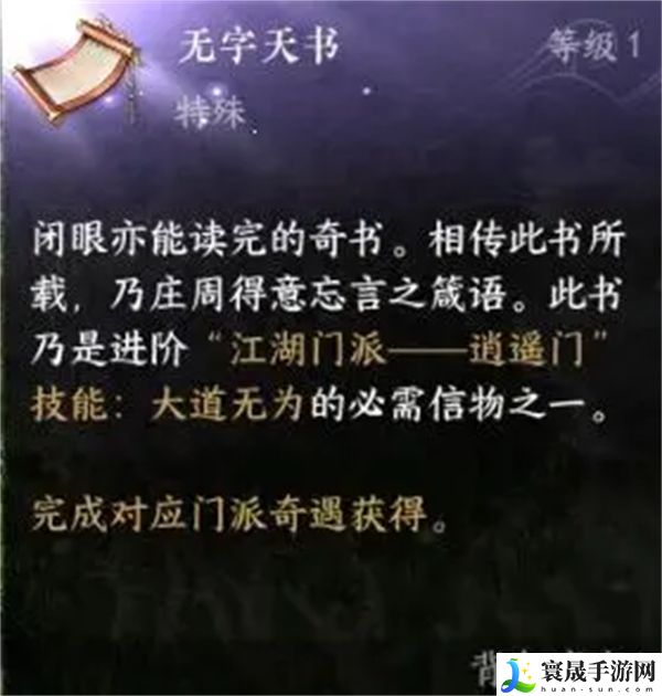3、完成奇遇,即可获得逍遥门特质升级信物【无字天术】。