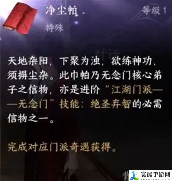 3、完成奇遇,即可获得无念门的特质信物【净尘帕】。