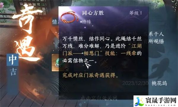 3、完成奇遇,即可获得相思门特质升级信物【同心方胜】。