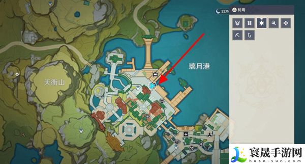 3、然后前往璃月港的这个位置,找到枕鸢并与其对话就能解锁商店了。