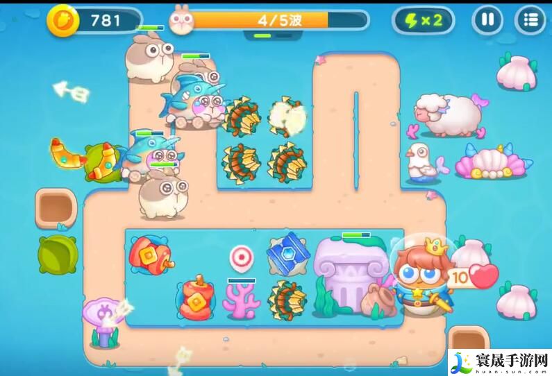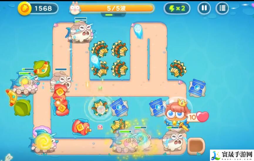 6、建造更多的防御塔进行输出,清理掉所有的兔子,即可完成本关的挑战。
