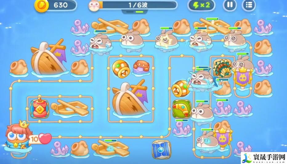 1、利用第一轮提供的防御塔清理障碍物对兔子进行输出,同时在中间和偏右的地方建造两个鱼雷,准备应对潜水的兔子。