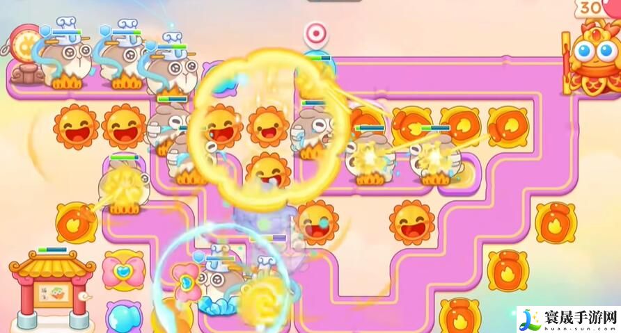 3、兔子来了打兔子,火炮打桃子,接着再把钱袋打掉。