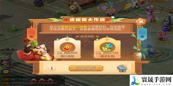 玩家家需要在战斗中需要保留对应口味粽子材料,这样才可以合成食客想要的粽子口味,来喂饱食客,玩家需要组队活动,才可以完成获取到最大的奖励。