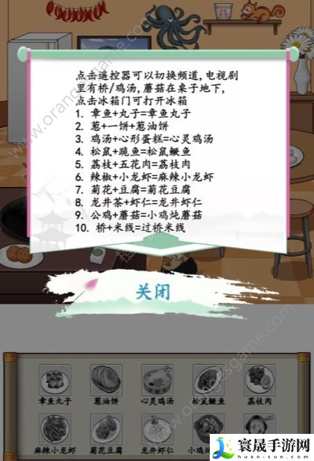 1.先点击遥控器可以切换频道,电视剧里有桥/鸡汤,蘑菇在桌子地下,点击冰箱门可打开冰箱。