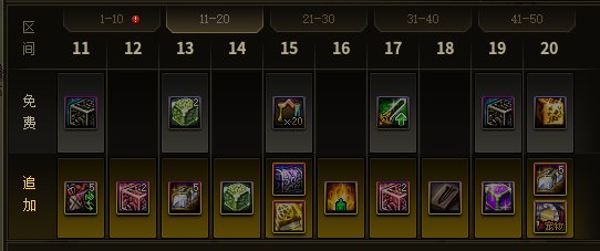 10级追加奖励“浪漫冒险通行券光环礼盒”:开启后,可以从3种浪漫冒险通行券光环装扮中,选择获得1个,获得的光环装扮拥有徽章镶嵌栏,可以镶嵌2个除白金徽章以外的任意颜色的徽章,获得的光环装扮没有删除时间,无法合成和分解;