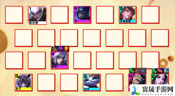 1、阵容组成风女、刀妹、泰隆、莫甘娜、悠米、基兰、慎、皎月