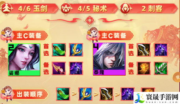 2、阵容羁绊4/6玉剑4/5秘术2宗师2明昼2刺客
