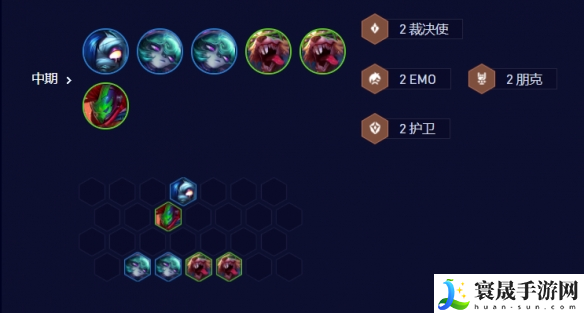 一般来说,2阶段走连败,3-2拉6级,找天选,最好是薇古丝天选,阿木木或老鼠的裁决天选也是可以的。然后存钱,靠着朋克每轮小D划水上7级,追出三星薇古丝和老鼠之后,上八开4裁决、4护卫或4emo。裁决最好,护卫次之。这套阵容属于快节奏阵容,一般很难上九级。