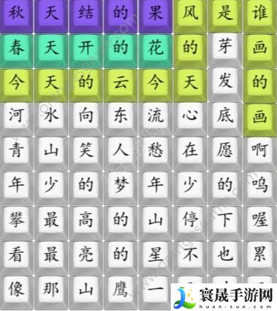 好了,最后我们只需要按上图来连歌词就可以轻松通关了,相信你只需要不到20秒就能完成本关挑战!