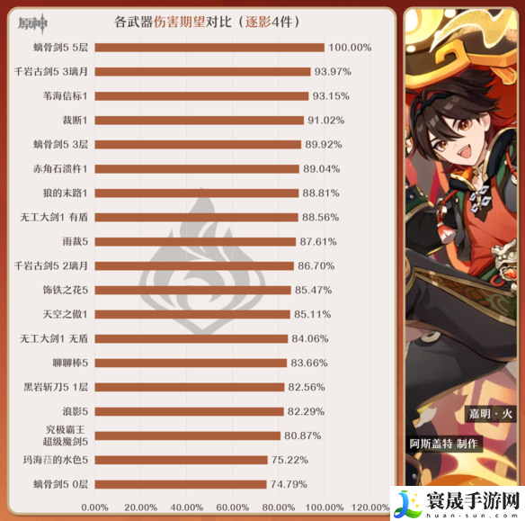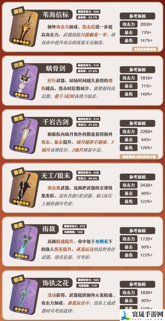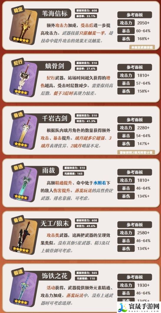 ①可观的基础攻击力、副属性暴击率加成已经能给嘉明带来非常不错的提升了,在一众5星武器中表现不错。