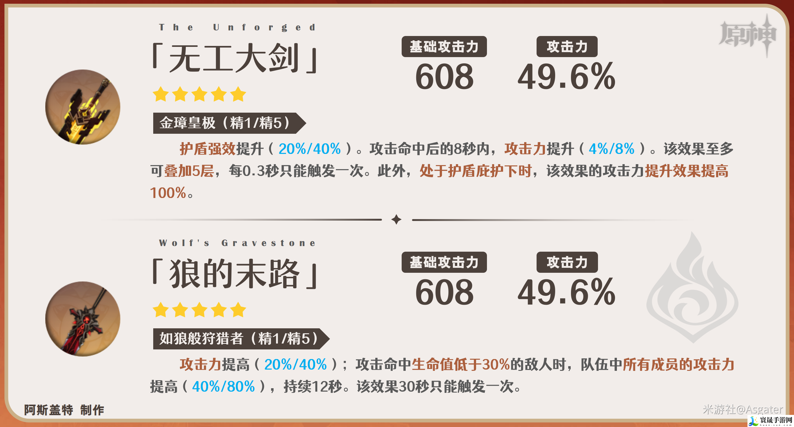 ①这两把攻击类武器对嘉明也有不错的提升,但如果搭配班尼特、闲云等能够提高基础倍率区间的辅助时,高额的攻击加成的稀释程度将会加深。