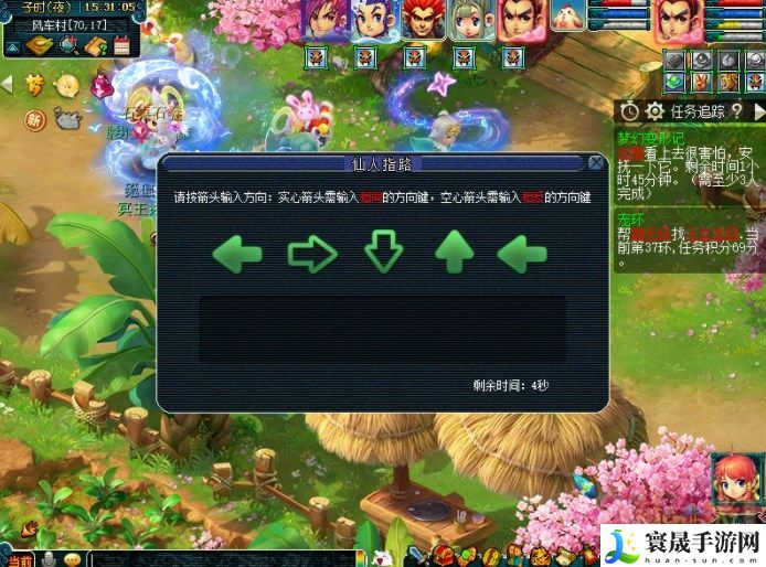 6、对话结束之后,根据自动寻路来到“看门狗”处进行对话,对话后往前走几步就能看到掌印,点击后即可进行追踪踪的方向会随机出现三个,分别为迷糊小妖、巡山小妖、山间小妹;