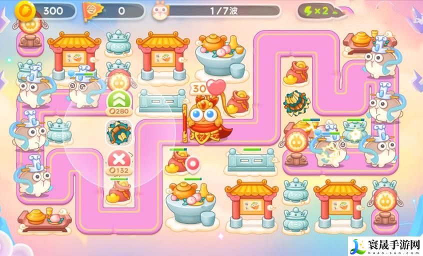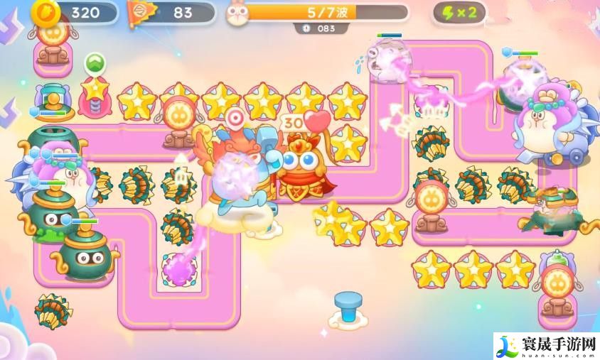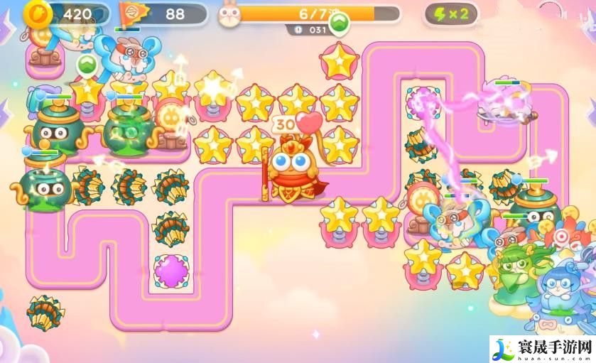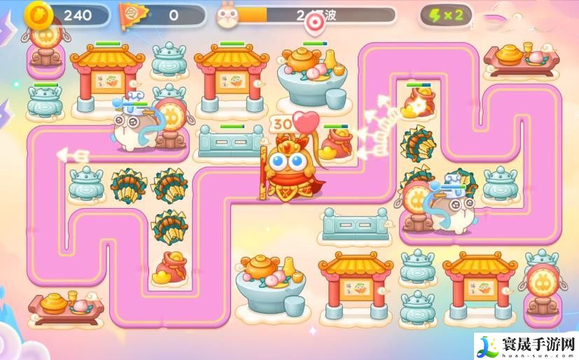 7、最后一波我们按照下面的排列直接开启二倍速挂机即可,等到金币充足的时候就在空闲地区建造炮台。