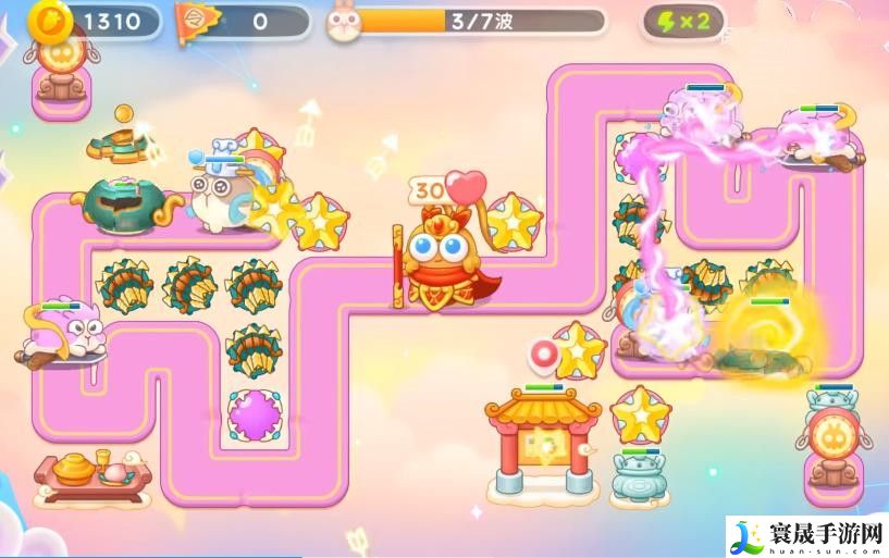3.左边和右边先是分别建立三级烟花,可以帮助打败后面的两个兔子。