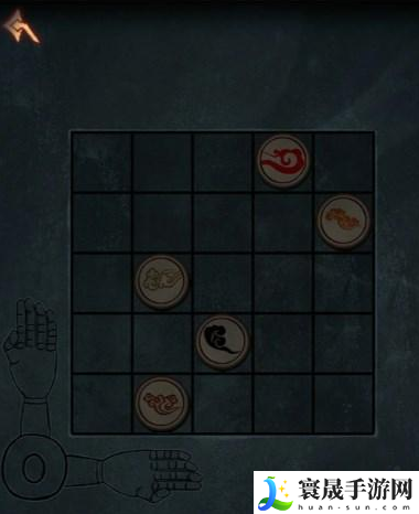 4.来到卧室,用笔洗在脸盆里装满水,放在月光下。解开枕头密码 ,获得黑色人偶。回到外面,将黑色人偶绿色人偶,拨浪鼓放在戏台上。完成小游戏获得龟甲片来到木工房,根据戏台小人调整右侧桌子上的盒子 ,获得倒流香。
