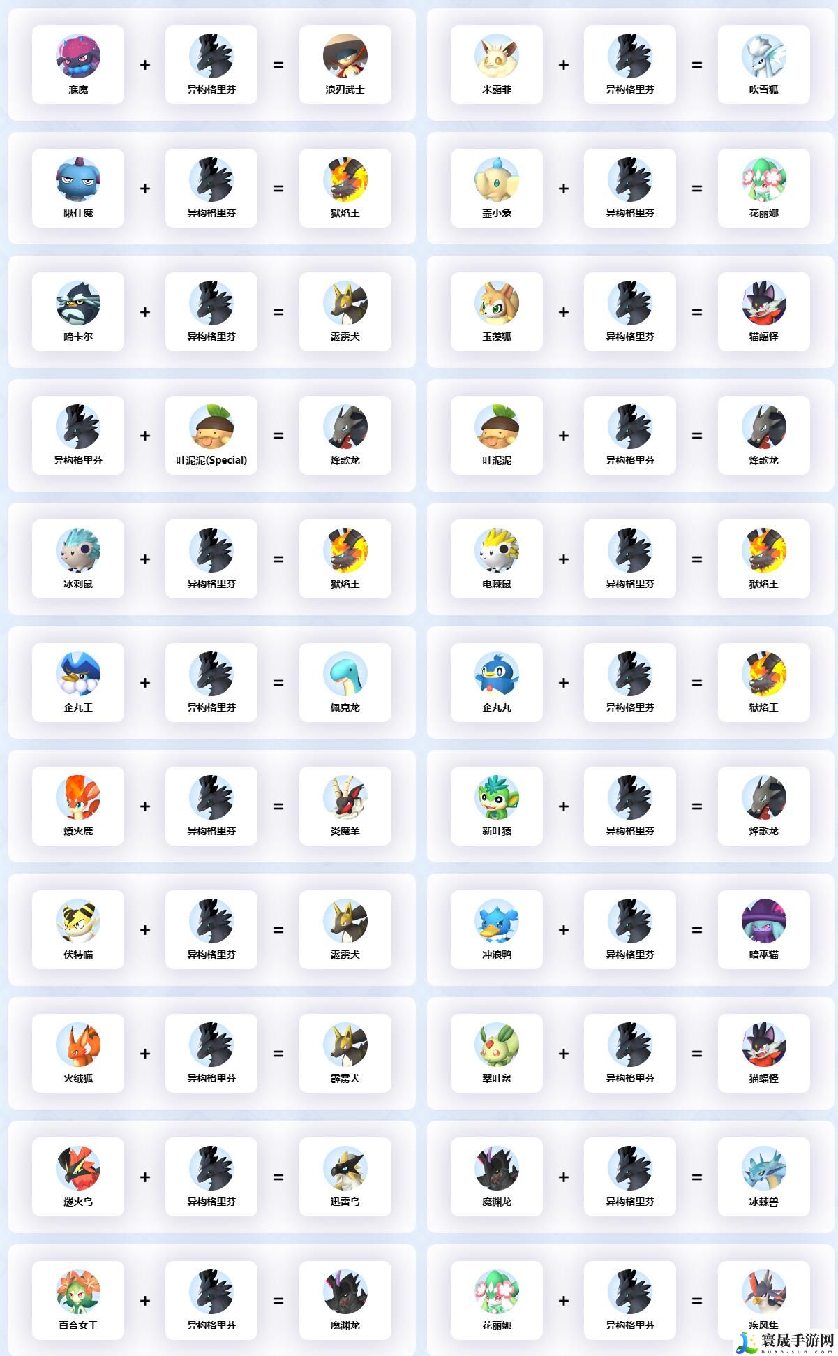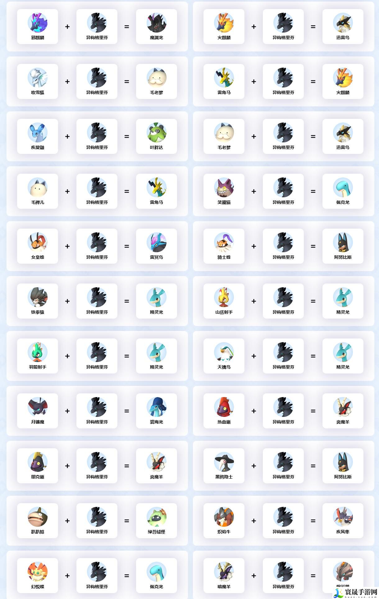 幻兽帕鲁异构格里芬配种公式一览