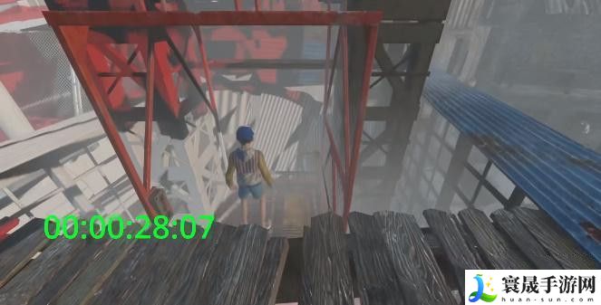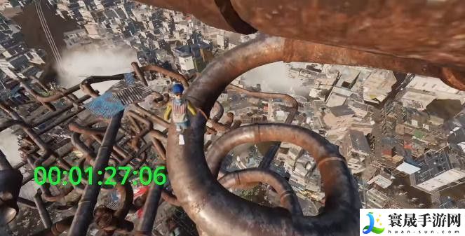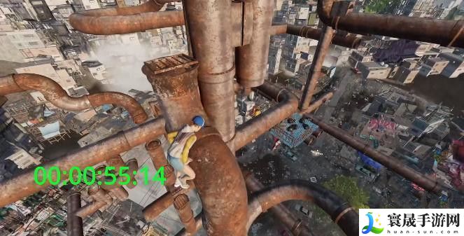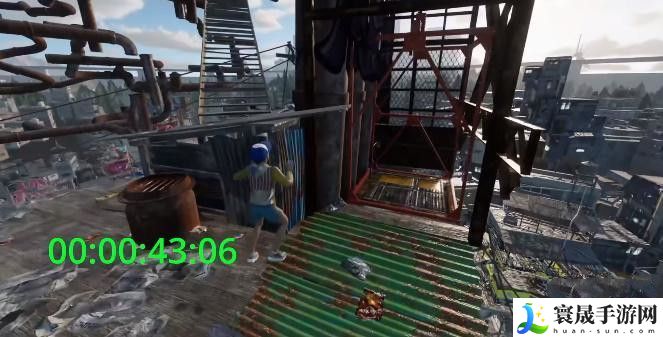3、下电梯后,我们直接上楼梯,这边是比较稳的,随后来到管道这边是比较危险的,如果你技术不好可以一直沿着走,其实这里是可以跳过去的哦!