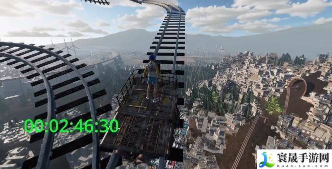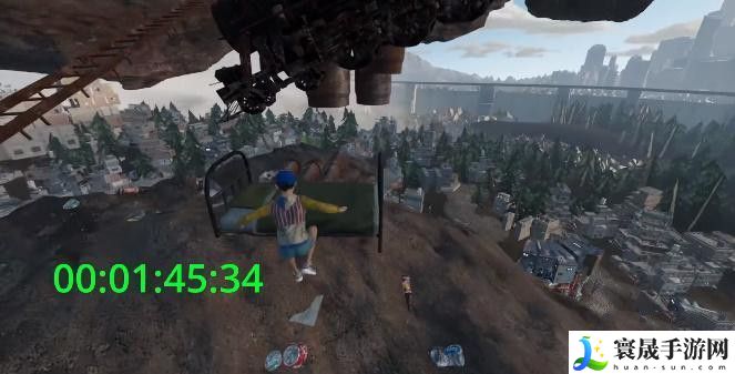 4、这边的螺旋管道是很多玩家容易掉下去的,可以慢一点跑,来到管道尽头可以发现一个床,我们跳上去是可以弹到上面的哦!