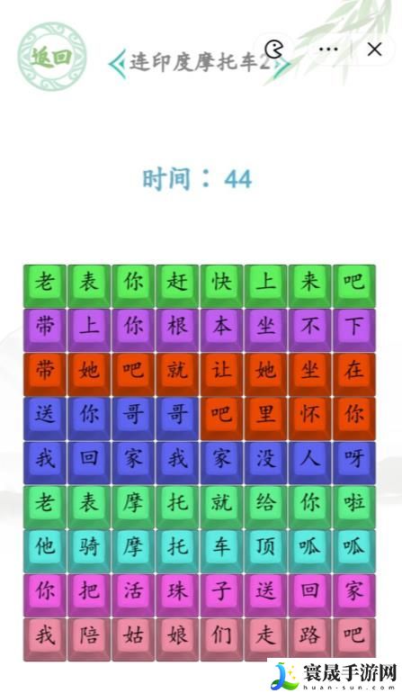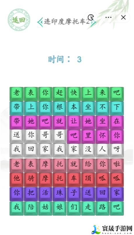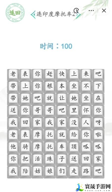 汉字找茬王连印度魔托车2需要我们将有趣的歌词连成完整的一首歌,接着上一作品我们来挑战印度摩托车的关卡,看看这次我们应该如何连线才能快速完成通关吧!