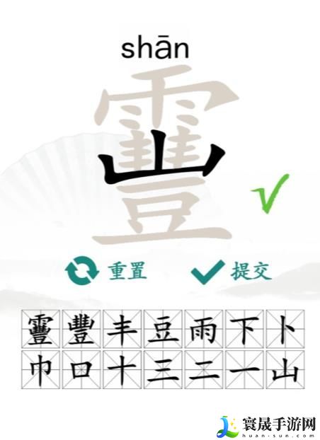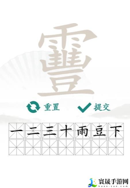 答案:靊、丰feng、丰、豆、山、雨、下、卜、巾、口、十、三、二、一。