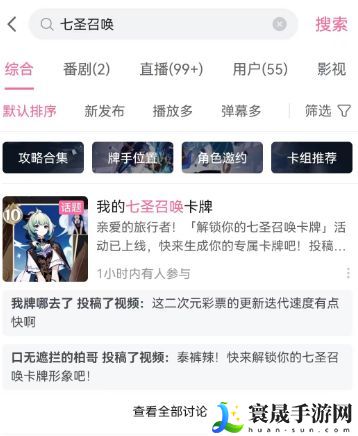1、首先我们需要进入BLIBILI,然后在搜索框输入【七圣召唤】找到下图搜索结果。