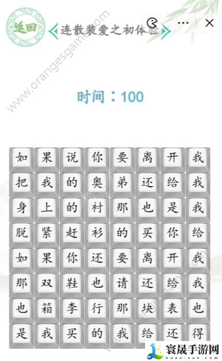 汉字找茬王连散装爱之初体验需要我们将一首分手歌曲完整的连成一首歌曲,大家经过简单的尝试一定能找到正确的答案,如要你能在游戏中按我们给的答案来连歌词一定能快速通过今天的关卡挑战!