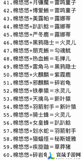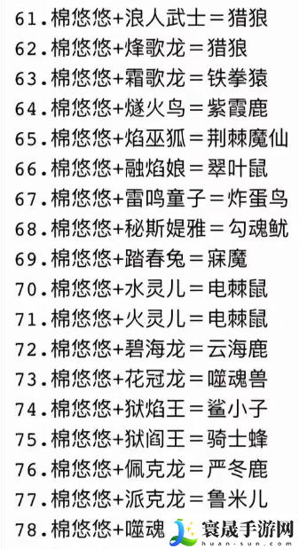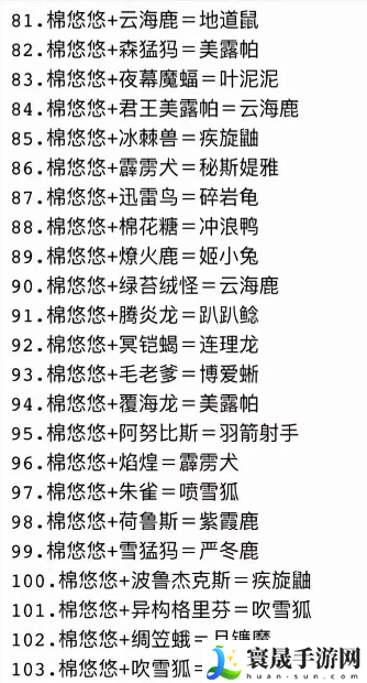 幻兽帕鲁棉悠悠合成表/配方公式