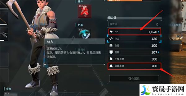 玩家可以考虑将能力加点主加在负重和血量上。