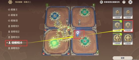 7.第六步:最后齿轮柱4也放上中型齿轮;
