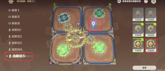 8.第七步:最后齿轮柱5也放上大型齿轮。