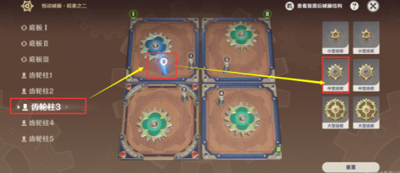 5.第四步:最后齿轮柱3也放上中型齿轮;
