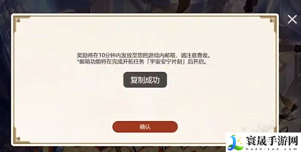 4、分享成功以后在领取奖励至游戏内邮箱,需要完成前置任务【宇宙安宁片刻】。