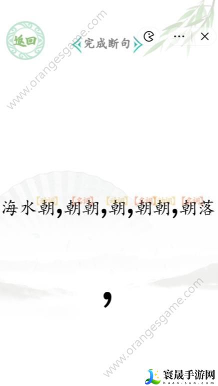 汉字找茬王断句8完成断句需要我们将两句诗词通过断句的方式让它通顺起来,第一句是关于海水朝,第二句是关于浮云长我们要如何断句才能完成本关卡的挑战呢,感兴趣的小伙伴们一起来了解下吧!