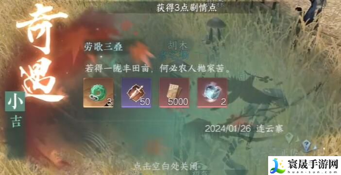 逆水寒这款游戏是网易旗下的一款武侠手游,游戏中有着广袤的世界地图可以探索,精美的景色,丰富的职业,有趣的玩法,以及各种不同的活动和任务奖励可以给你带来更多的欢乐,在游戏中有很多小伙伴不太清楚“劳歌三叠奇遇完成方法是什么”,下面就跟着小编一起来看看吧。
