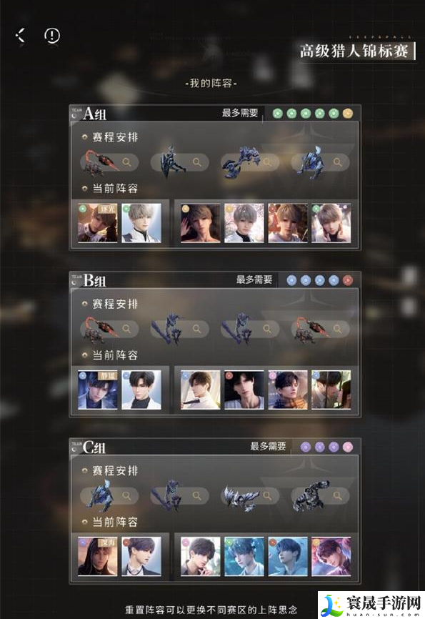 (1)不用按大组(图一)的星谱配队,先点击赛区查看想要达到的目标赛事星谱。