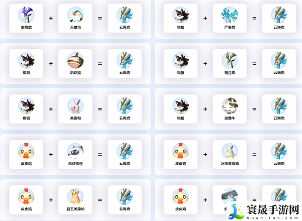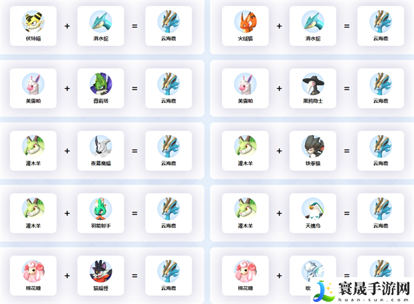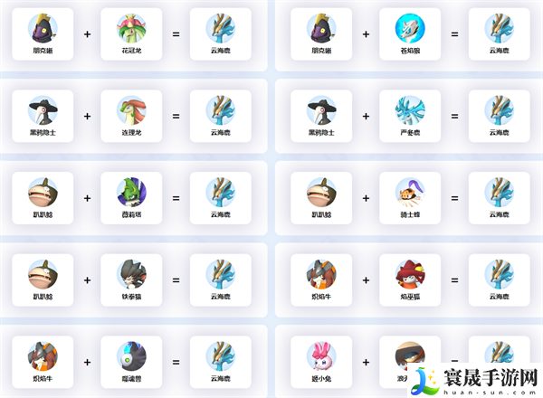 幻兽帕鲁云海鹿怎么配种?云海鹿这个帕鲁可以当作坐骑,移动速度很快,那么小编下面就为大家来分享下幻兽帕鲁云海鹿的繁殖攻略,拥有所有的配种格式,赶快来看看吧。
