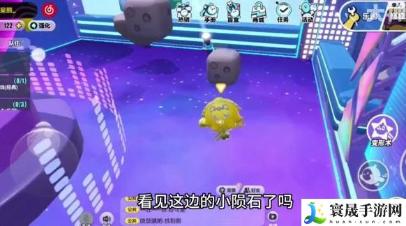 2、到达地图之后我们需要从小的陨石上跳下来;