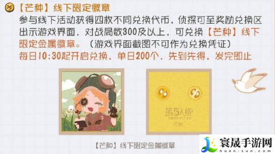 第五人格24节气线下活动已经开始预热了,这次线下活动将给我们带来满满的福利,芒种兑换卡,线下徽章还有限定明信片都很丰富,想参加本次第五人格芒种节气的小伙伴以前来了解下,让自己领取到更多的福利吧!