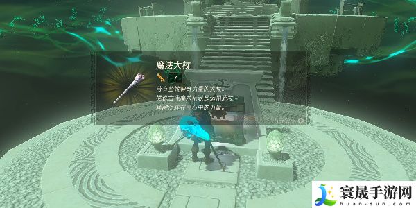 2、进入神庙后,我们直接往前走,就可以发现一个宝箱,打开后可以得到【魔法大杖】,然后再往前走就可以打卡通关了哦!