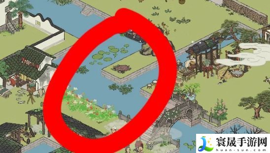 5、和秦婶对话,需修复牌坊,需要菱角在右上水里;