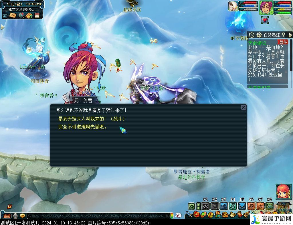 顿时,非天所到之处划开了一道口子,而这道口子立即化成了旋涡,把我们一起卷了进去。卷进去的我们定了定心神,发现此处是一个陌生又美丽的空间,周围云雾缭绕,有山川河流,也有各式各样的符文,俨然一副世外桃源的景象。但是就在我们沉醉于这美丽的环境之中时,一个长相奇怪的人不由分说就一斧向我们劈来。触发本任务的最后一场战斗。