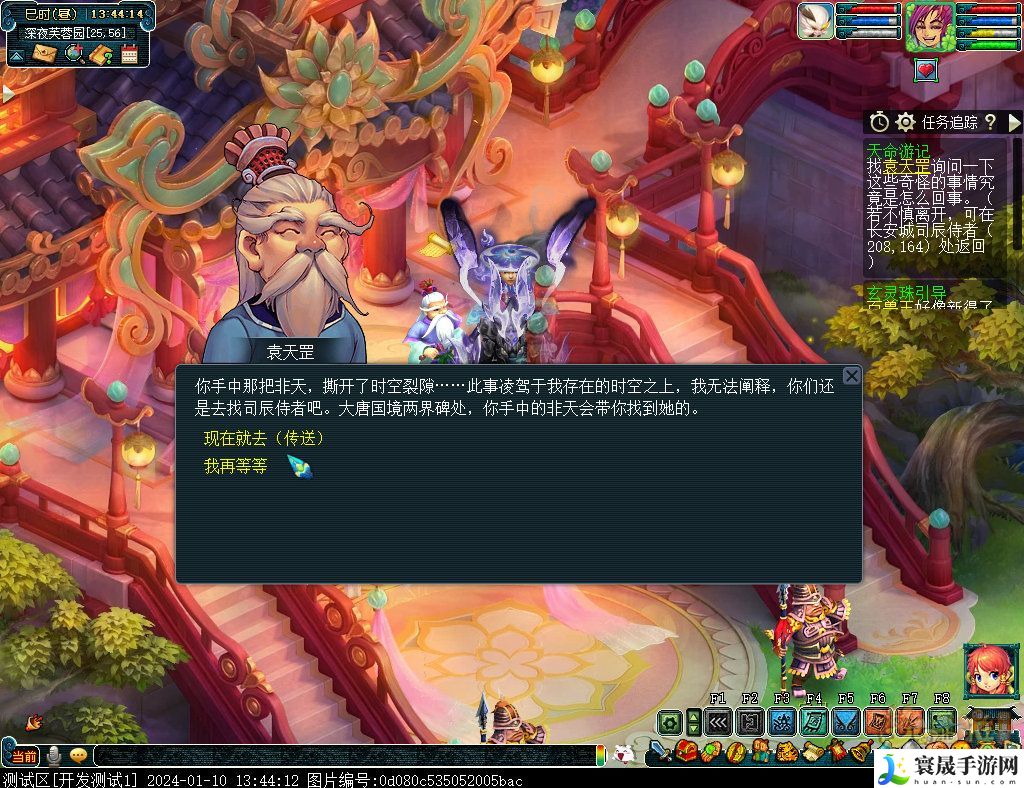 芙蓉园乃大唐皇家花园,擅闯肯定不妥,我们和影精灵等到夜半守卫打盹之际溜了进去,不料这么晚了,袁天罡还在等着我们。袁天罡告诉我们,我们身处的世界并不是我们以前待着的世界,因此我们发现了和我们的认知冲突的现象。但是这里的人们却已经习以为常,所以面对我们的疑问他们展露出了看猴子的眼神(楚门的世界),而这一切的根源,来自于影精灵手中的非天双斧。这对双斧在与化外混沌决战之时无意中切开了时间的裂隙,导致出现了时空乱流的现象,使得我们从原来的那个时空卷入了眼前的时空。袁天罡表示,尽管自己法力广大,但仍然无法突破时间和位面的局限,如果要返回原来的世界,我们还需要找到能控制时间和空间的司辰侍者帮忙。