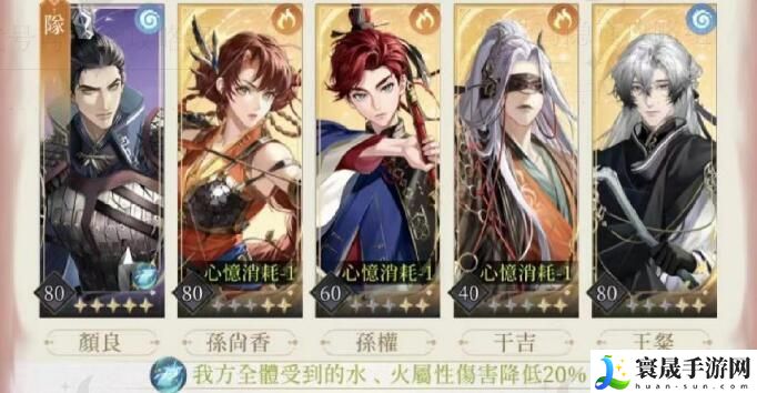 颜良(队长)+孙权(防御嘲讽与受击减伤命盘)+干吉(低练最佳)+治疗位+高练度输出。