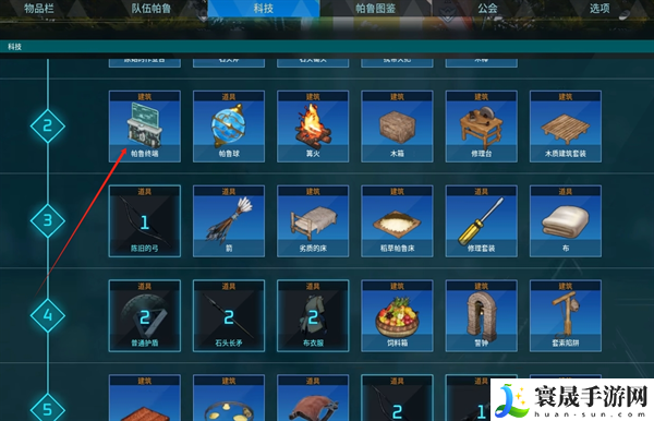 3、在科技页面里,玩家在二级索引里能够找到【帕鲁终端】。
