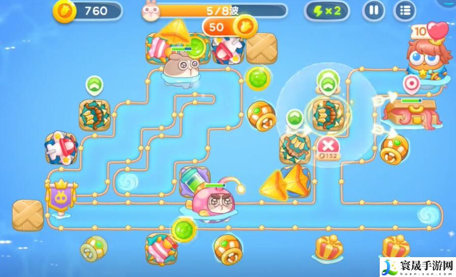 8、在左侧建造额外的塔,对各种类型的怪物进行输出,随后即可完成这关的挑战。