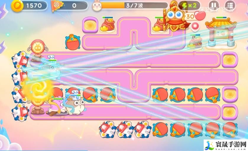 保卫萝卜4周赛5月25日是零氪玩家第四天,二转五天神,开头我们在下方放两个飞机用来打钱袋,兔子来了打兔子,优先锁粉兔,今天的布局主要使用乒乓球拍和飞机相互配合的打法进行,接下来让我们看看5月25日周赛无伤图文通关教程吧!